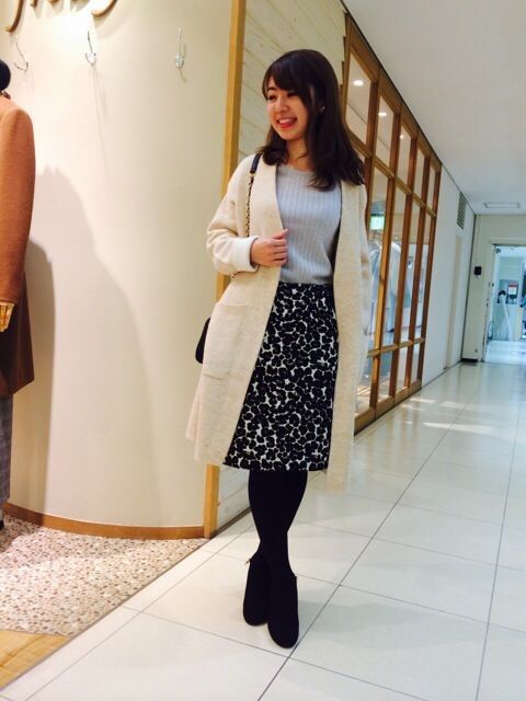 スカートのヒョウ柄で華やかさを出しつつも、羽織りとトップスはシンプルに合わせておりますので、